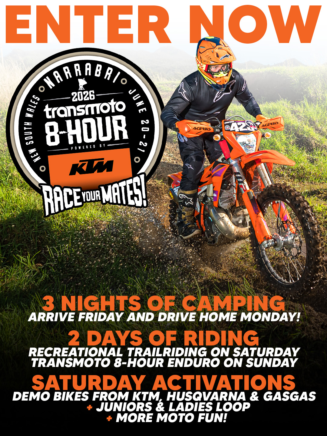 Entries for the 2026 Transmoto 8-Hour at Narrabri, NSW (June 20-21) are now OPEN!